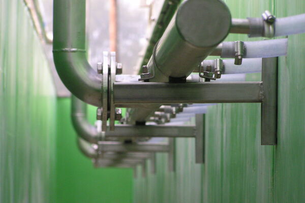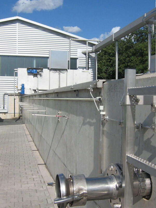 Die Kläranlage am Standort Glessen wurde auf den Einwohnerwert 9 000 und einen maximalen Abwasserzufluss von 75 Liter pro Sekunde ausgelegt. Wir bauten sie weitestgehend unter Nutzung der vorhandenen Anlagenbestandteile um. Die biologische Reinigung erfolgt im vorhandenen Belebungsbecken. Die Membranfiltration mit rund 12 000 Quadratmetern Hohlfaserkapillarmembranen haben wir vierstraßig ausgebaut. Neben der in-situ- und on-air-Reinigung haben wir eine integrierte chemische Intensivreinigung installiert.