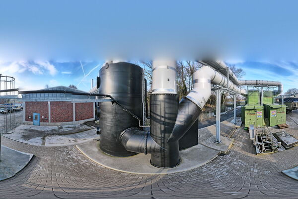 - einen Abluftwäscher samt Lagertank für Schwefelsäure mit 20 Kubikmetern Fassungsvermögen und nachgeschaltetem Biofilter